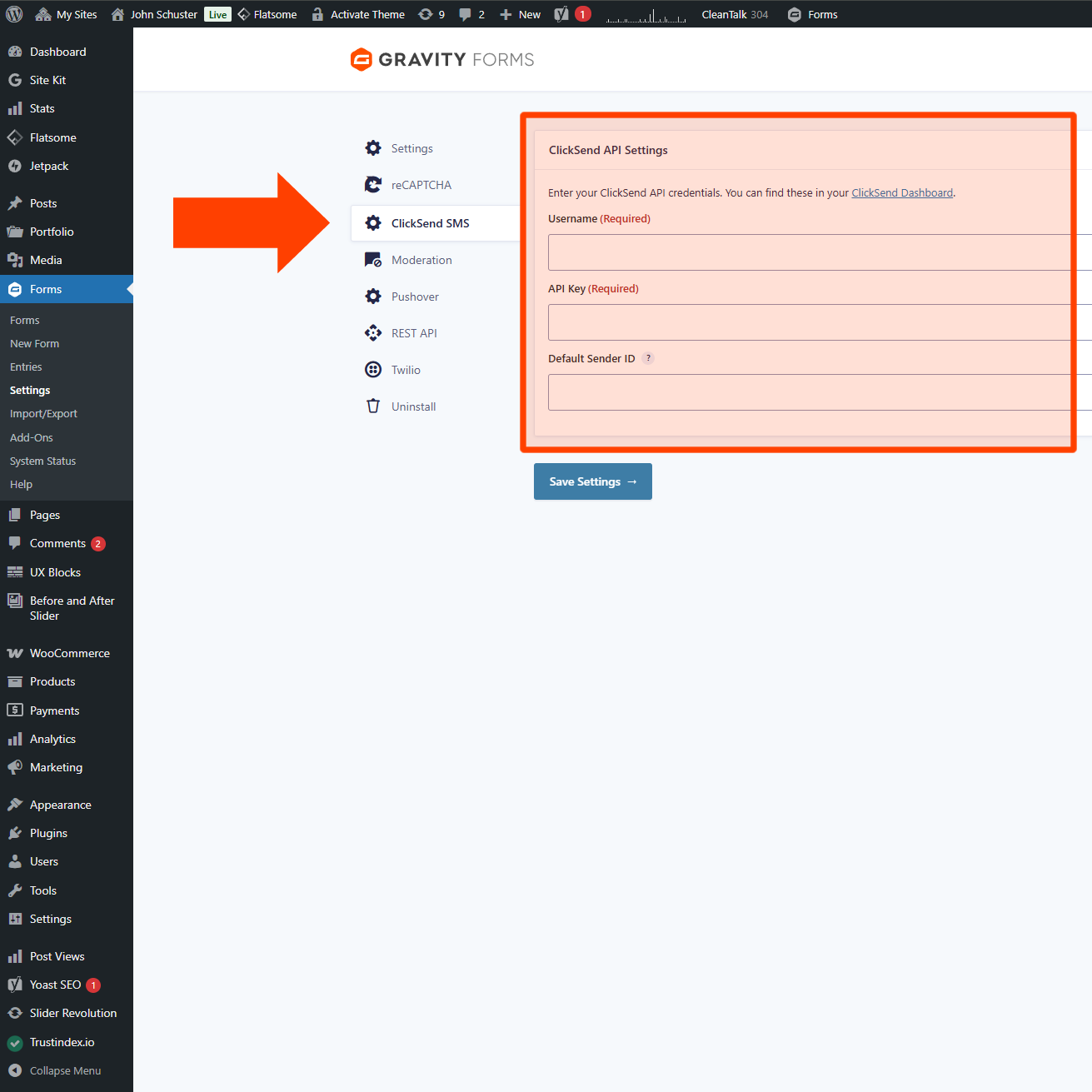Step 2: Add ClickSend Credentials (1 minute) Enter your ClickSend username and API key from your ClickSend dashboard.